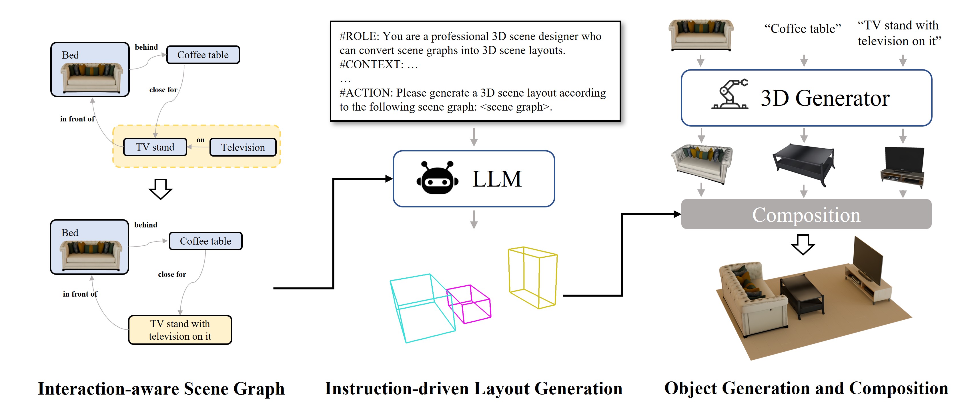 We propose a scene graph-based 3D indoor scene generation method for the efficient simulated environment creation, that maintains both high diversity and fine-grained control.